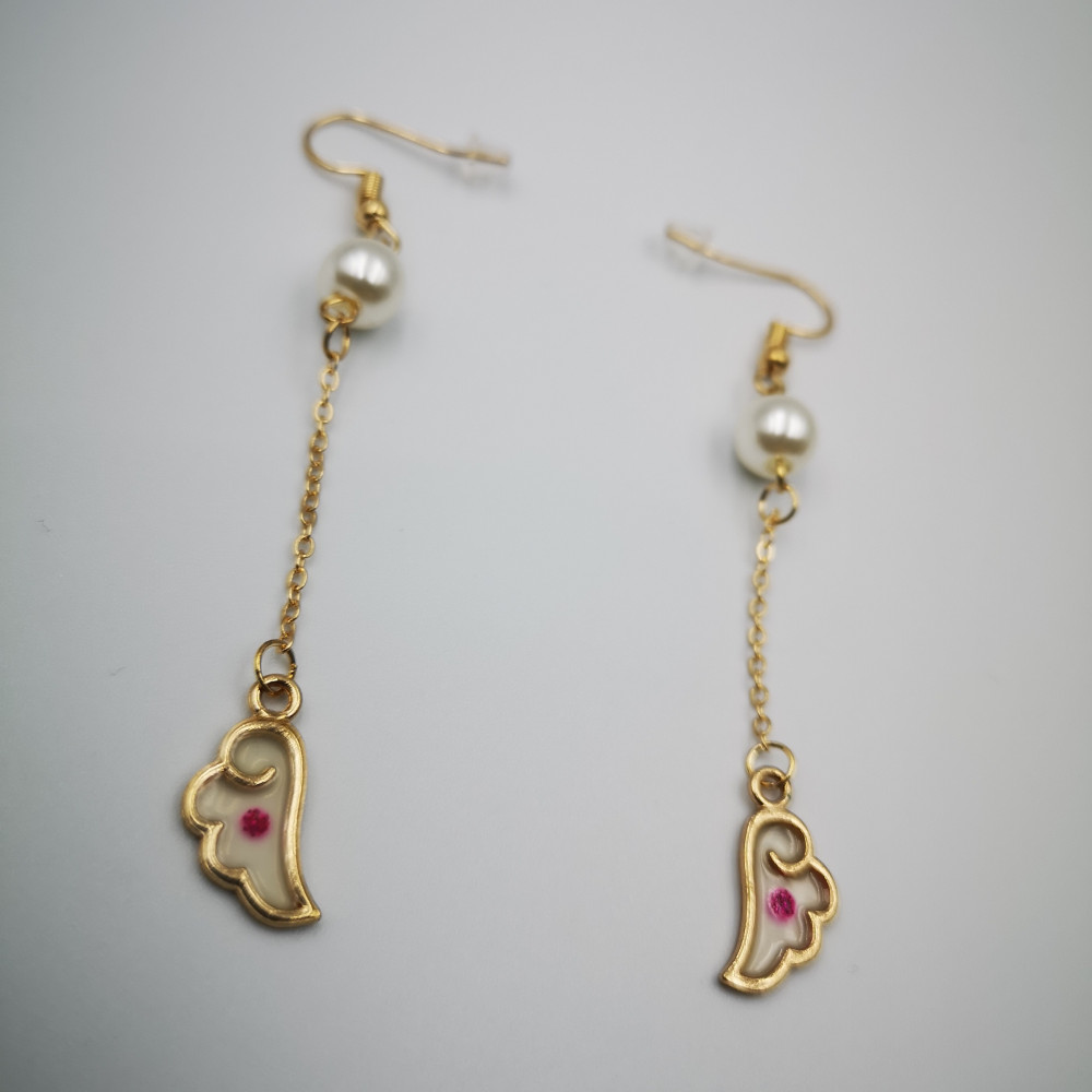 أقراط لأنمي كارد كابتور ساكورا جذابة يوجد فيها قطعتين لؤلؤ فالأعلى وفي الأسفل جناح صغير.