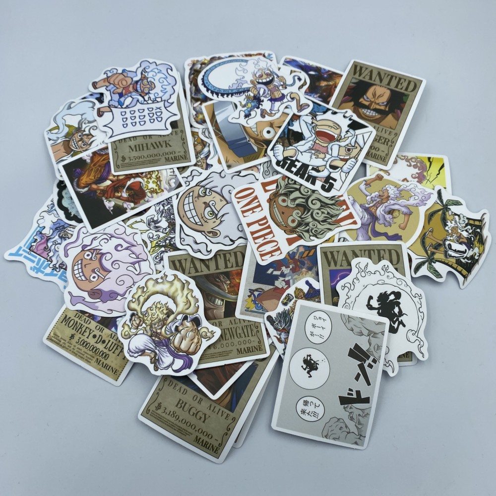 ملصقات أنمي ون بيس تأتي مجموعة 50 ملصق غير متكرر ضد الموية الخفيفة ولا تترك أثر عند إزالتها وتتراوح أحجام الملصقات من 3 إلى 7 سم.