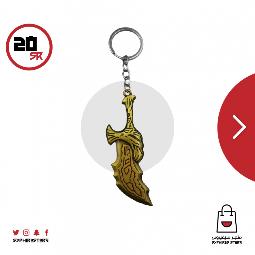 ميدالية حديدية عبارة عن سيف ذهبي لبطل لعبة قود أوف وار كريتوس.