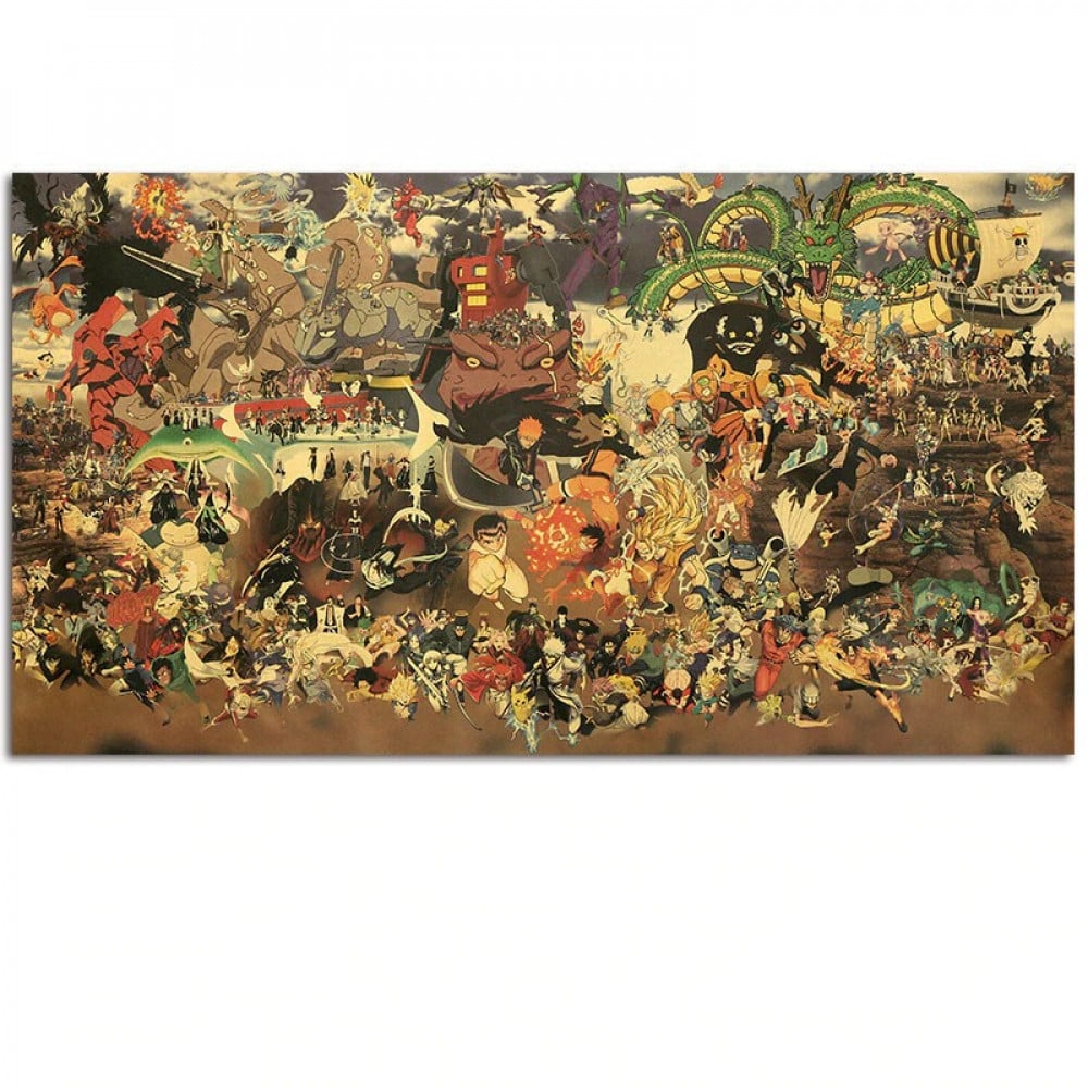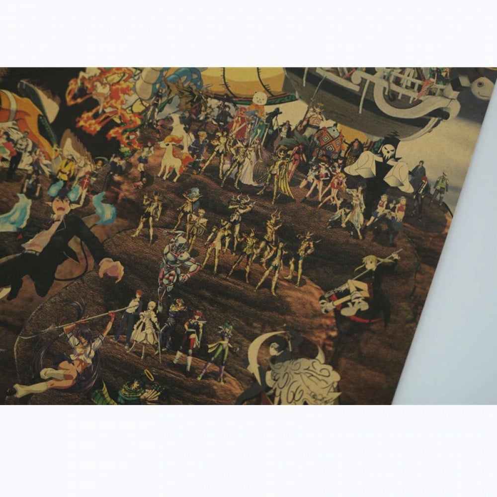 بوستر كبير يحمل شخصيات أنميات كثيرة وحجمه كالآتي: الطول 38.5سم والعرض 70سم تقريبًا.
