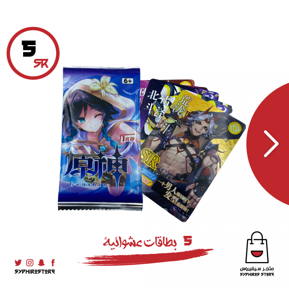 حزمة بطاقات لعبة قينشن امباكت مكونة من 5 بطاقات عشوائية تحمل شخصيات الأنمي.
