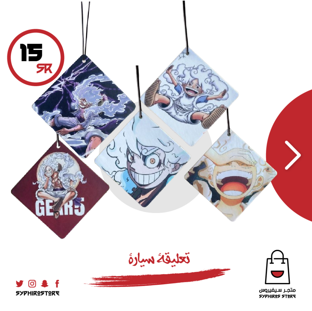 تعليقات سيارة برائحة الصابون المنعشة تحمل شخصية لوفي في هيئة القير الخامس نيكا من الجهتين من أنمي ون بيس.