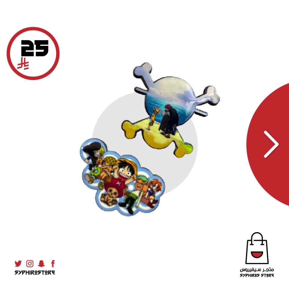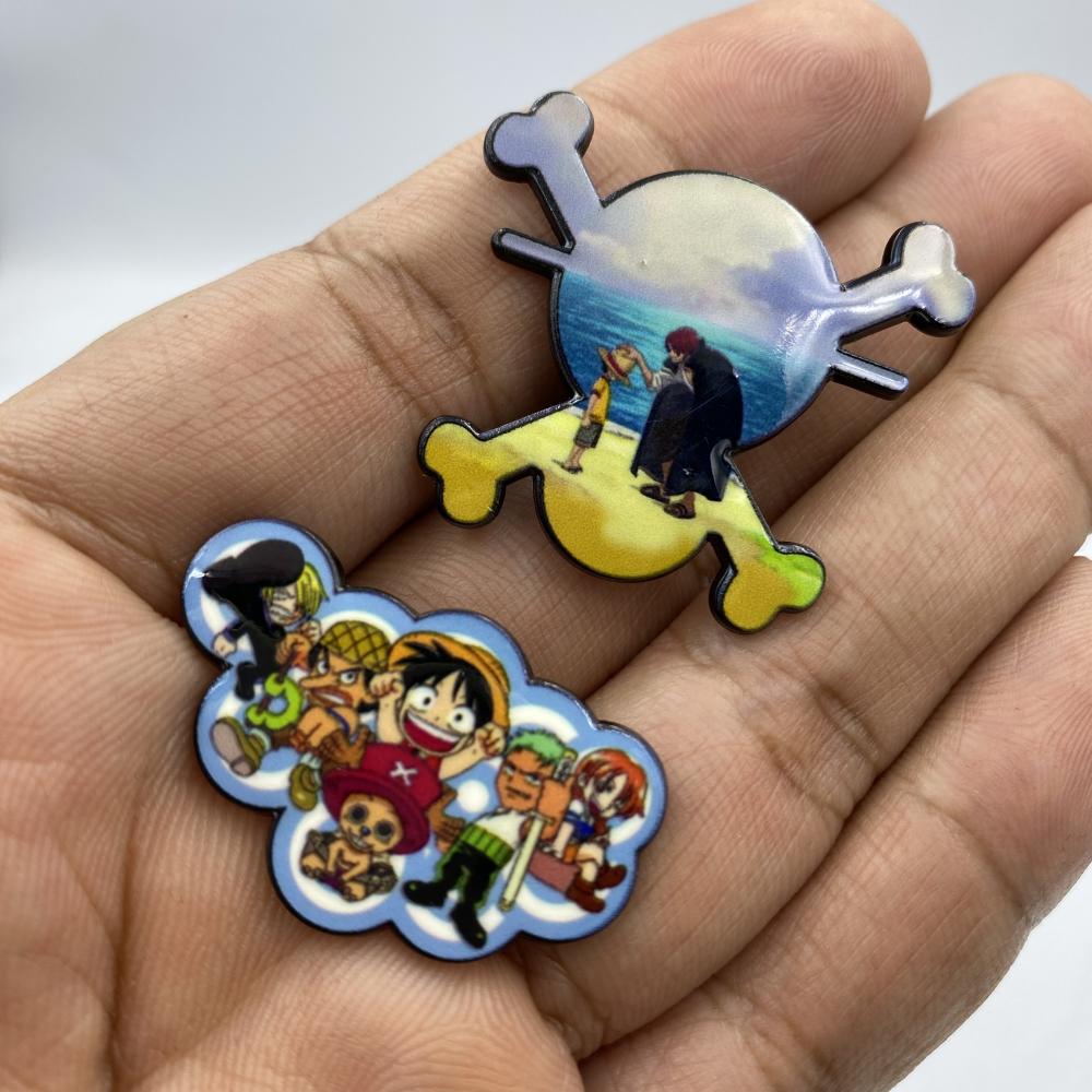 عدد 2 بروش مصنوعة من المعدن تحمل شخصيات ون بيس.
