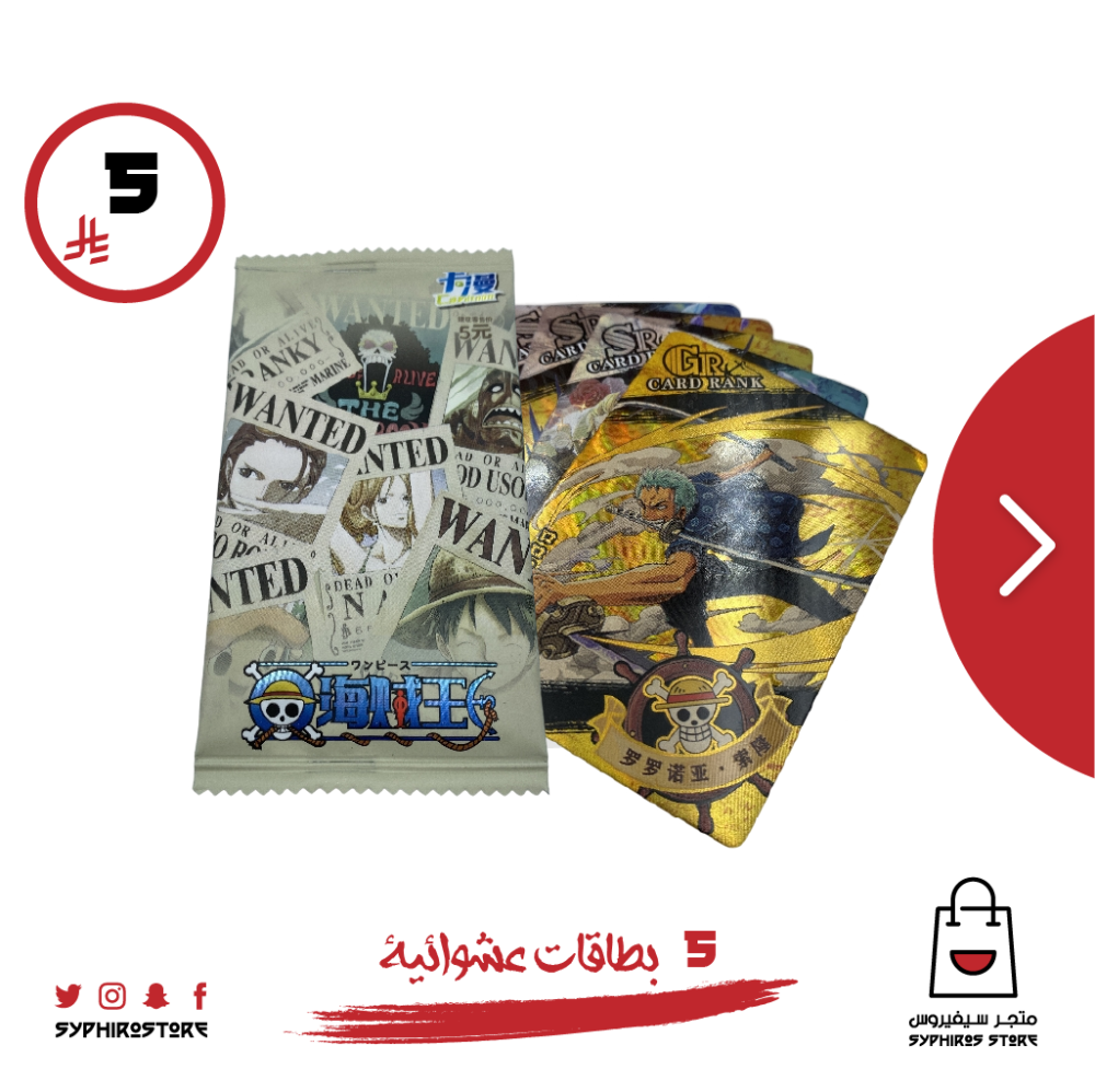 حزمة بطاقات أنمي ون بيس مكونة من 5 بطاقات عشوائية تحمل شخصيات الأنمي.