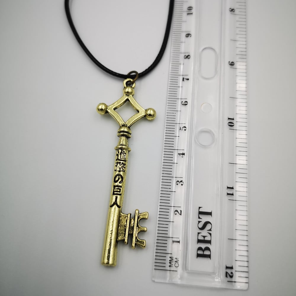 سلسال معدني لمفتاح إيرين بلون مائل إلى البرونزي محفور عليه أحرف باللغة اليابانية في مقدمته.