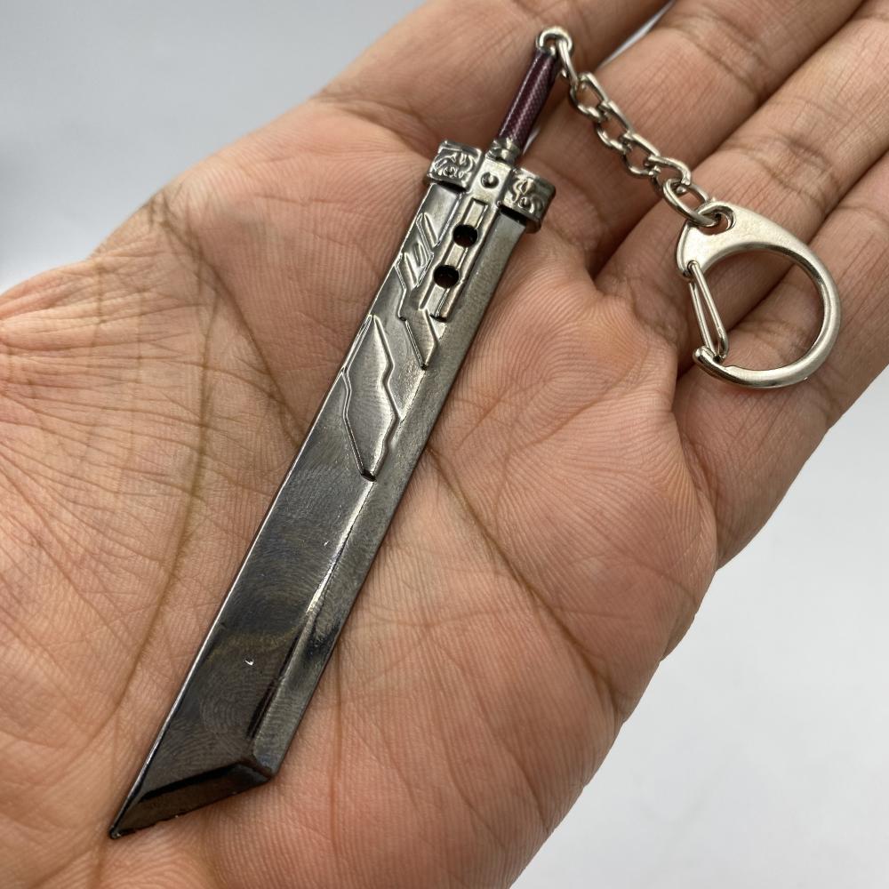 ميدالية معدنية لسيف شخصية كلاود من لعبة فاينل فانتاسي 7 مع قاعدة.