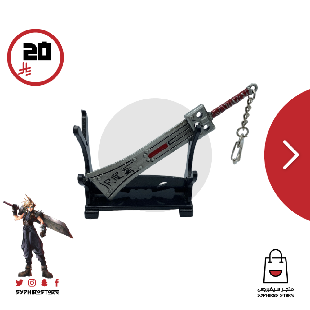 ميدالية معدنية لسيف شخصية كلاود من لعبة فاينل فانتاسي 7 مع قاعدة.
