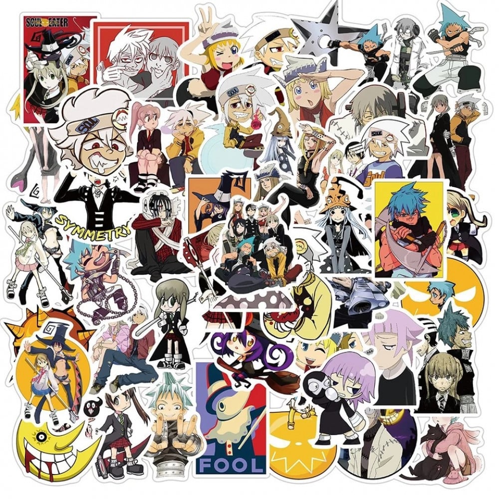 ملصقات أنمي سول إيتر تأتي مجموعة 50 ملصق غير متكرر ضد الماء الخفيف ولا تترك أثر بعد إزالتها، تتراوح أحجام الملصقات بين 3 إلى 10 سم.