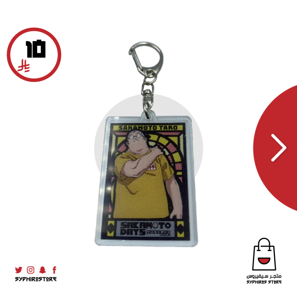 ميدالية مصنوعة من الأكريليك لشخصية تارو ساكاموتو من أنمي أيام ساكاموتو.