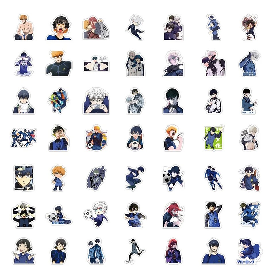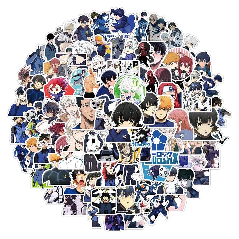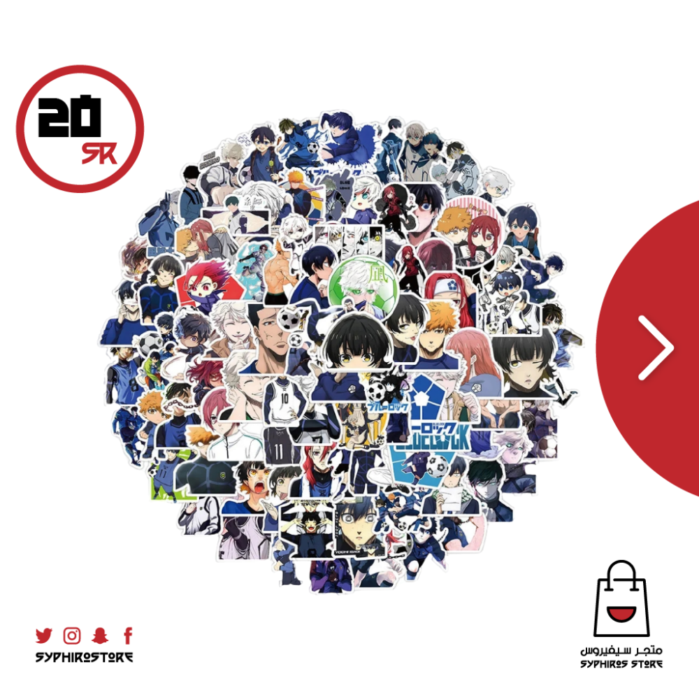 ملصقات أنمي بلو لوك تأتي مجموعة 50 أو 100 ملصق غير متكرر ضد الموية الخفيفة ولا تترك أثر بعد إزالتها، تتراوح أحجام الملصقات ما بين 3 إلى 8 سم.