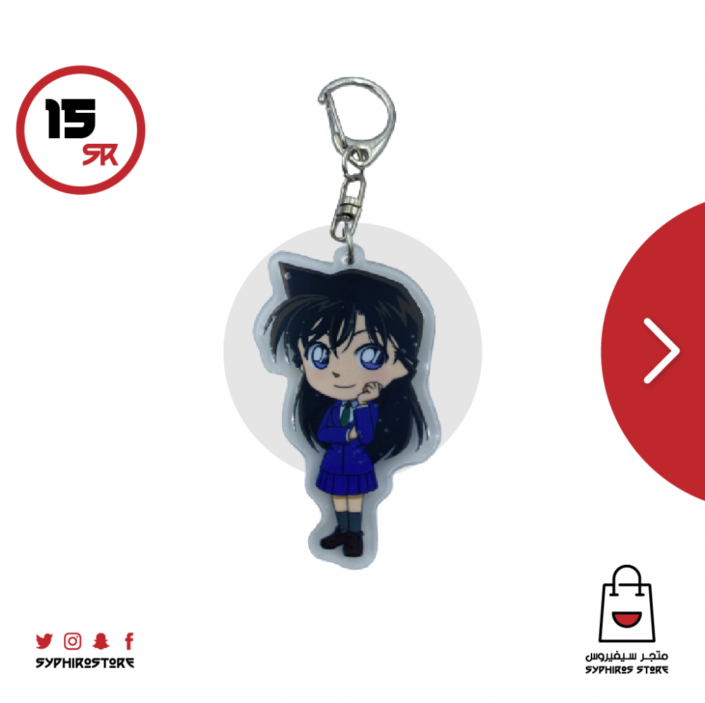 ميدالية مصنوعة من الإكرليك تحمل شخصية ران موري من أنمي كونان من كلا الجانبين.